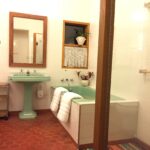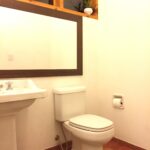 Banheiro: um banheiro principal com banheira e um lavabo, ambos com água quente nos lavatórios