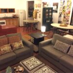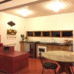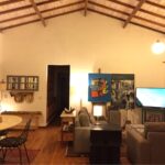 A casa é rústica (na medida para a simplicidade do campo), ampla (ambientes grandes conectados com a área externa), charmosa (decorada com arte e objetos colecionados ao longo da vida), e aconchegante (confortável, ventilada, iluminada, quentinha).
